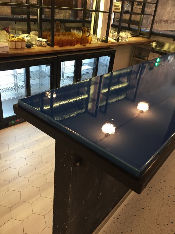La société Meals a crée un nouveau concept de restauration à Madrid et a choisi l'atelier LAVASTONE à Toulon pour la réalisation et l'installation des plans du comptoir bar en lave émaillée.