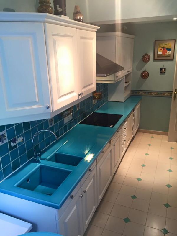 Toutes nos réalisations en lave émaillée - comme pour cette cuisine - sont faites sur mesure, à la demande, c'est pourquoi nous ne réalisons pas que des plateaux et plans de travail mais également quantité de projets autres que vous pouvez nous soumettre afin de les étudier ensemble.