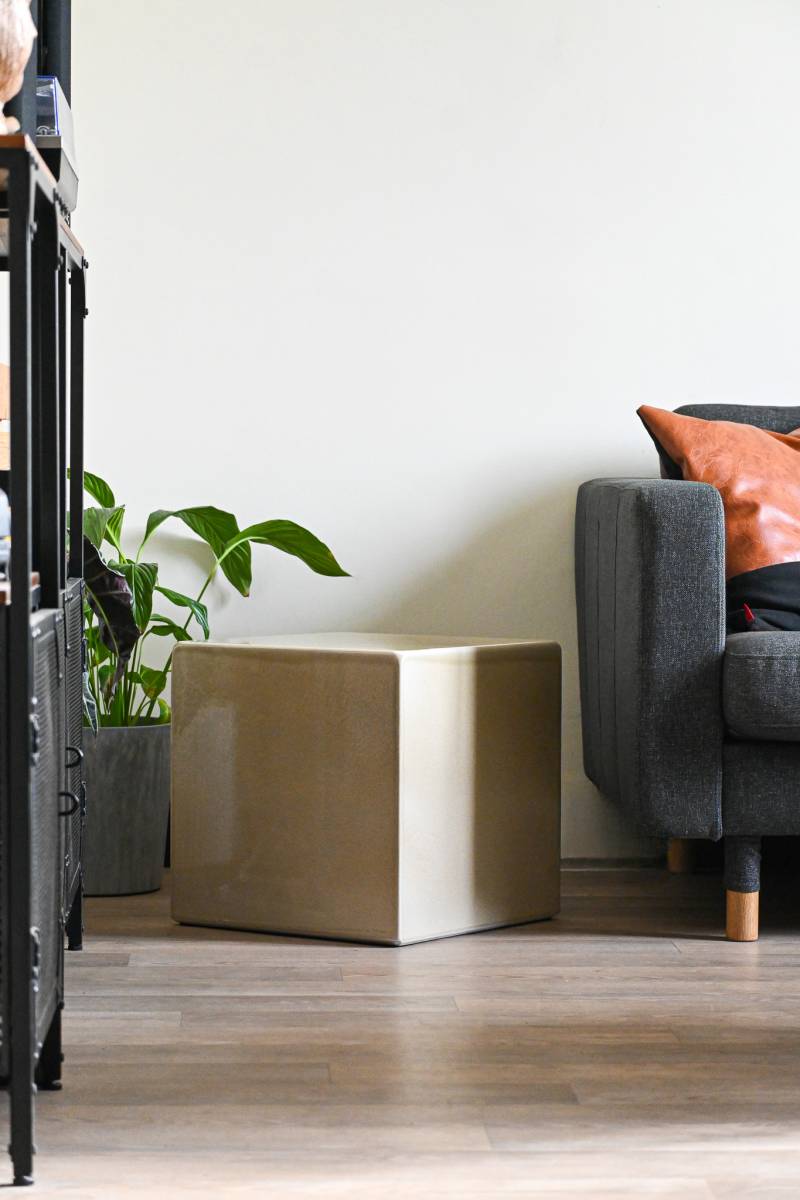 Ce cube, aux dimensions idéales de 40 x 40 cm, est soigneusement conçu avec une structure évidée qui apporte légèreté visuelle tout en préservant une solidité remarquable. Sa finition émaillée de couleur “pierre” lui confère une élégance naturelle et discrète, capable de sublimer tous les styles d’aménagement, qu’il s’agisse d’un intérieur contemporain ou d’un espace extérieur raffiné.
