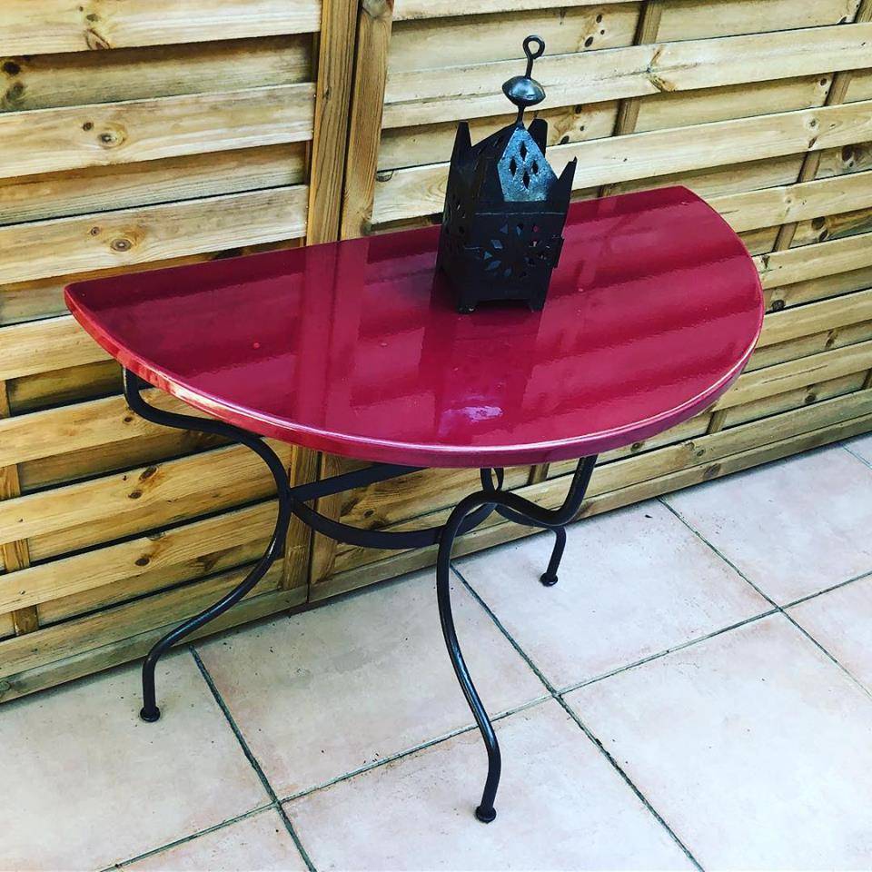 Fourniture par LAVASTONE à Toulon de piétements de table style Console ou Demi Lune en métal pour plateau en lave émaillée.