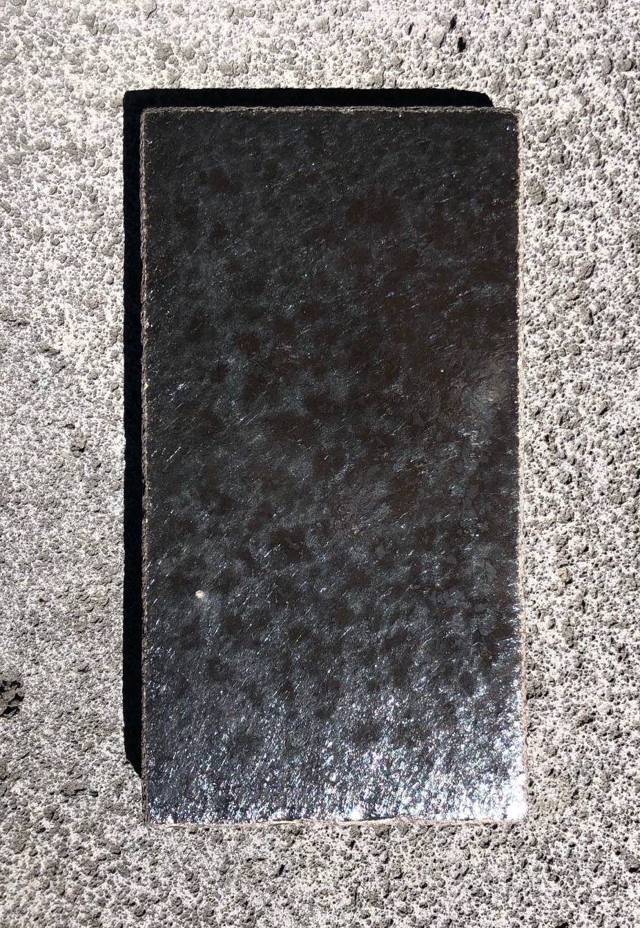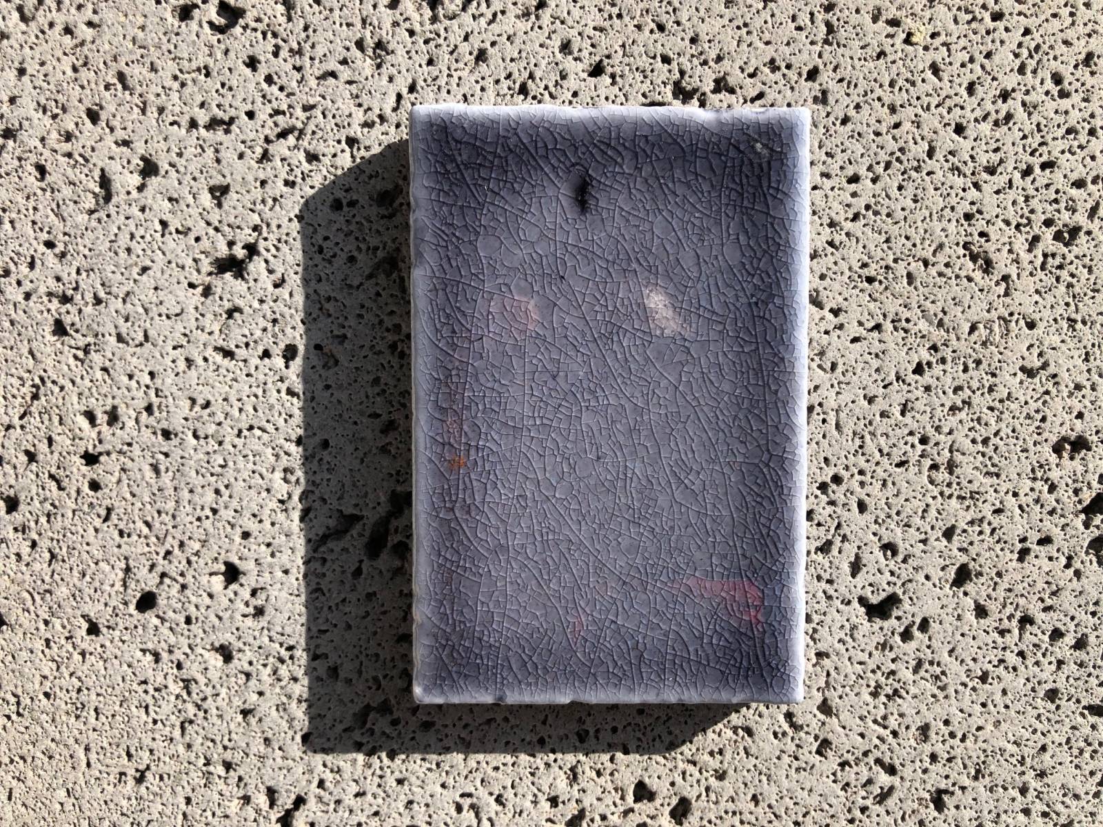 Suite à la cuisson du four à très haute température, ces réalisations uniques peuvent présenter de légères déformations entraînant la non planéité de la plaque, quelques petites taches, trous, bulles et un tréssaillage* plus ou moins marqués.