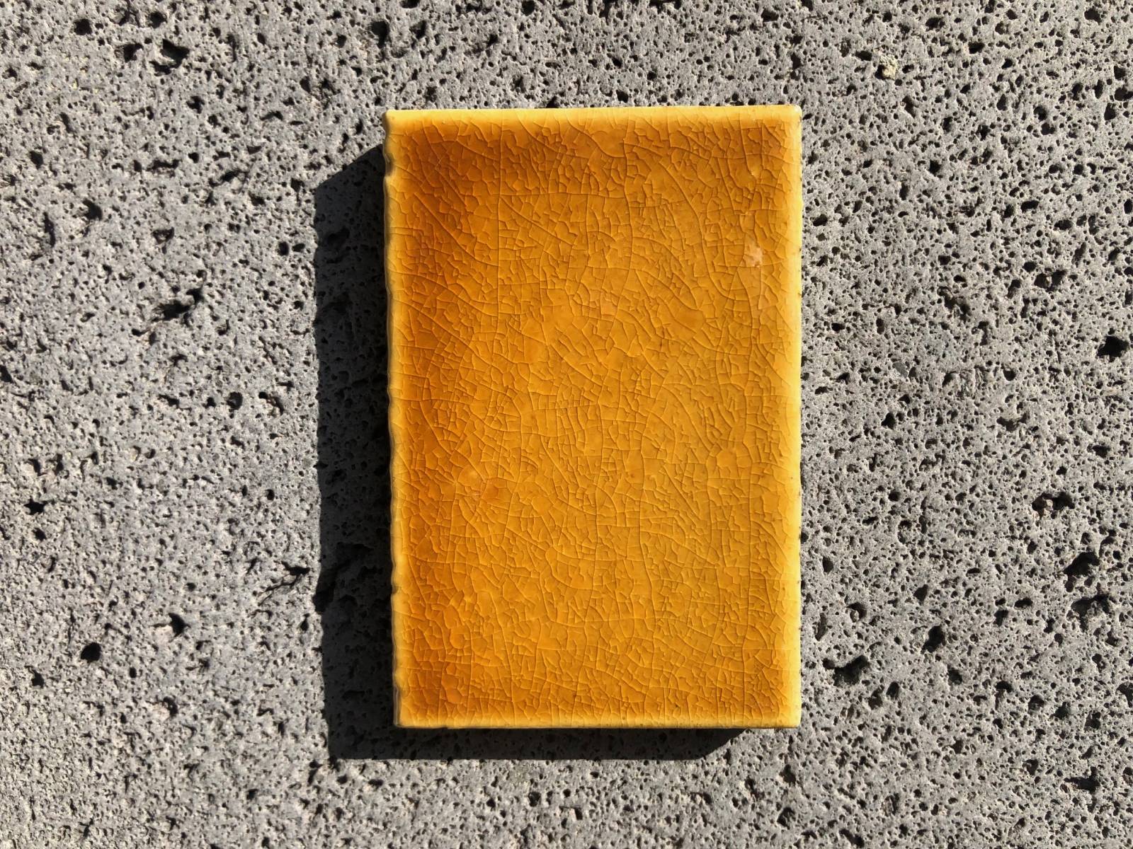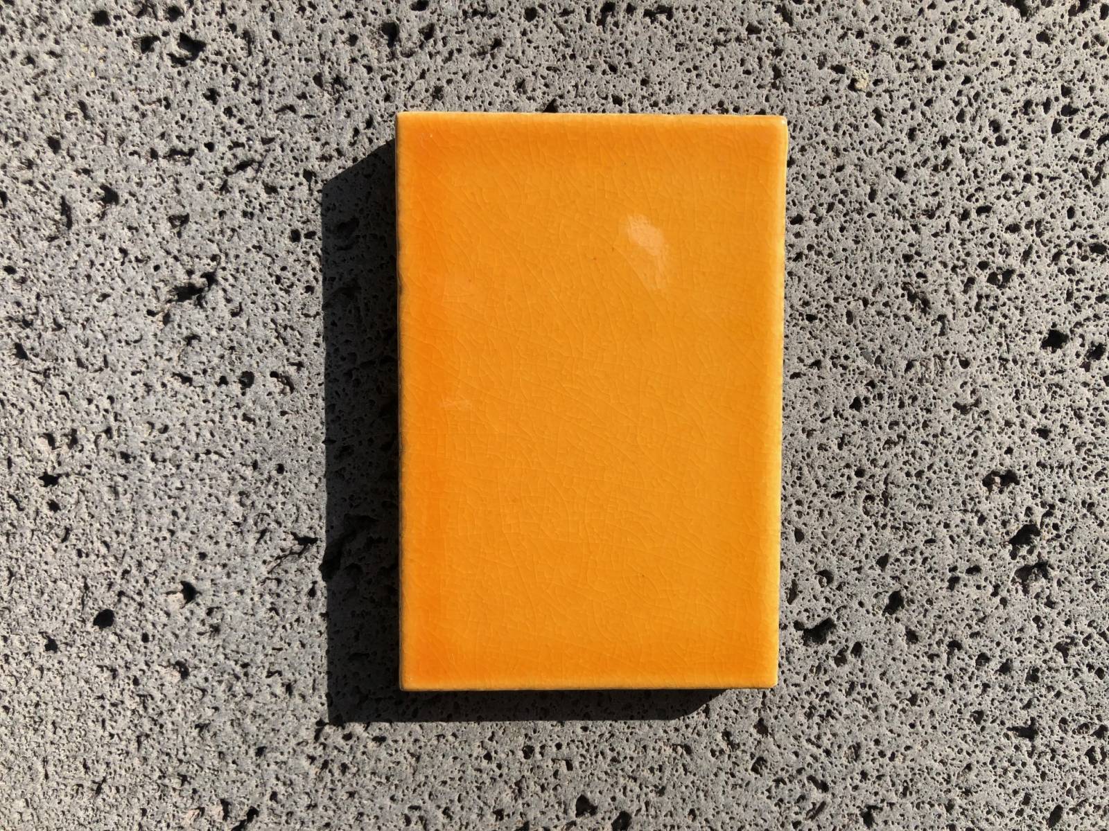 Suite à la cuisson du four à très haute température, ces réalisations uniques peuvent présenter de légères déformations entraînant la non planéité de la plaque, quelques petites taches, trous, bulles et un tréssaillage* plus ou moins marqués.