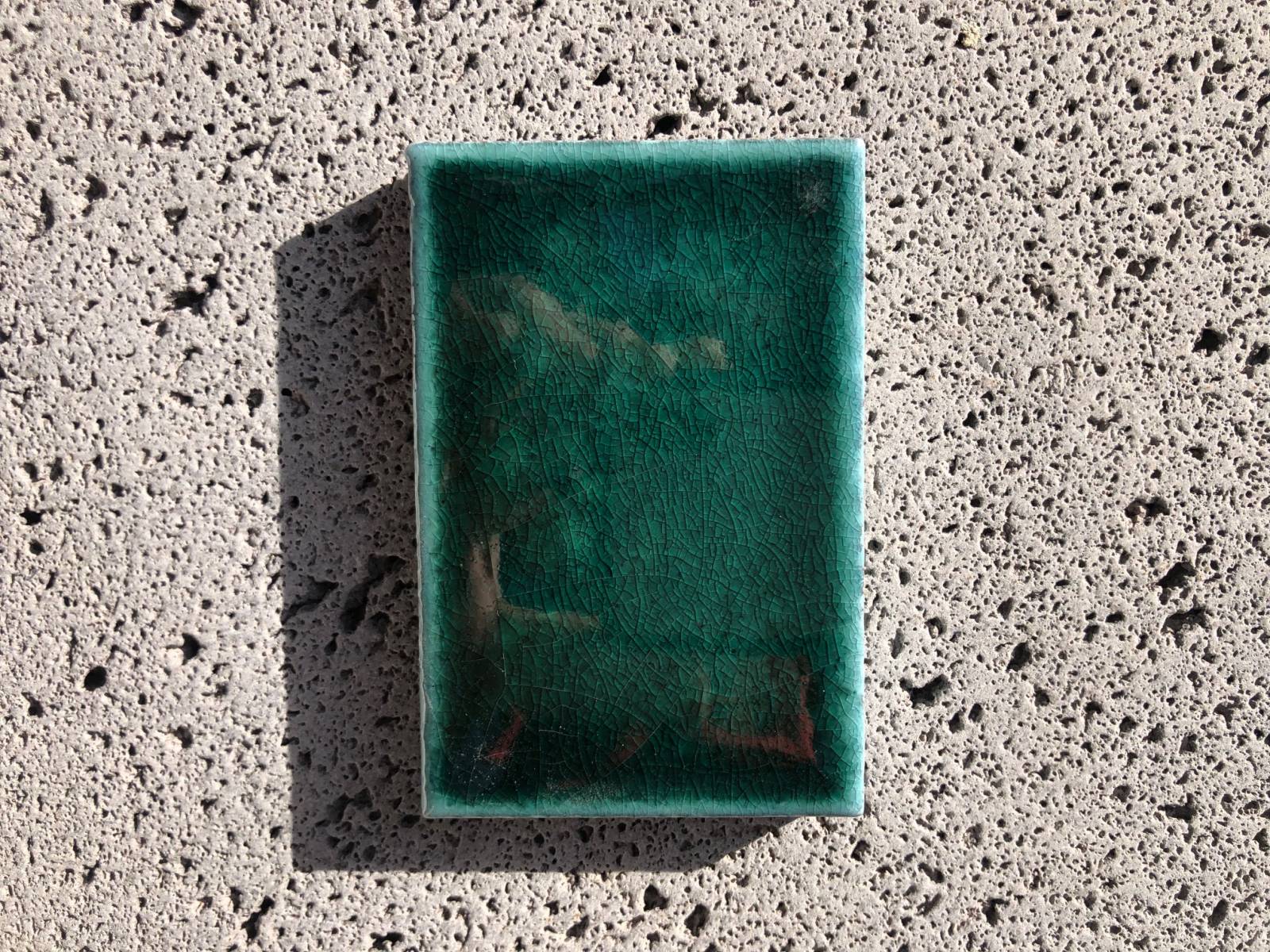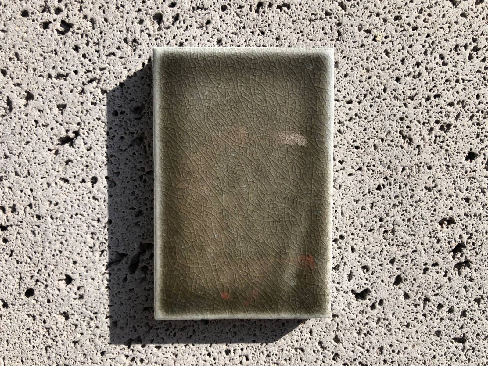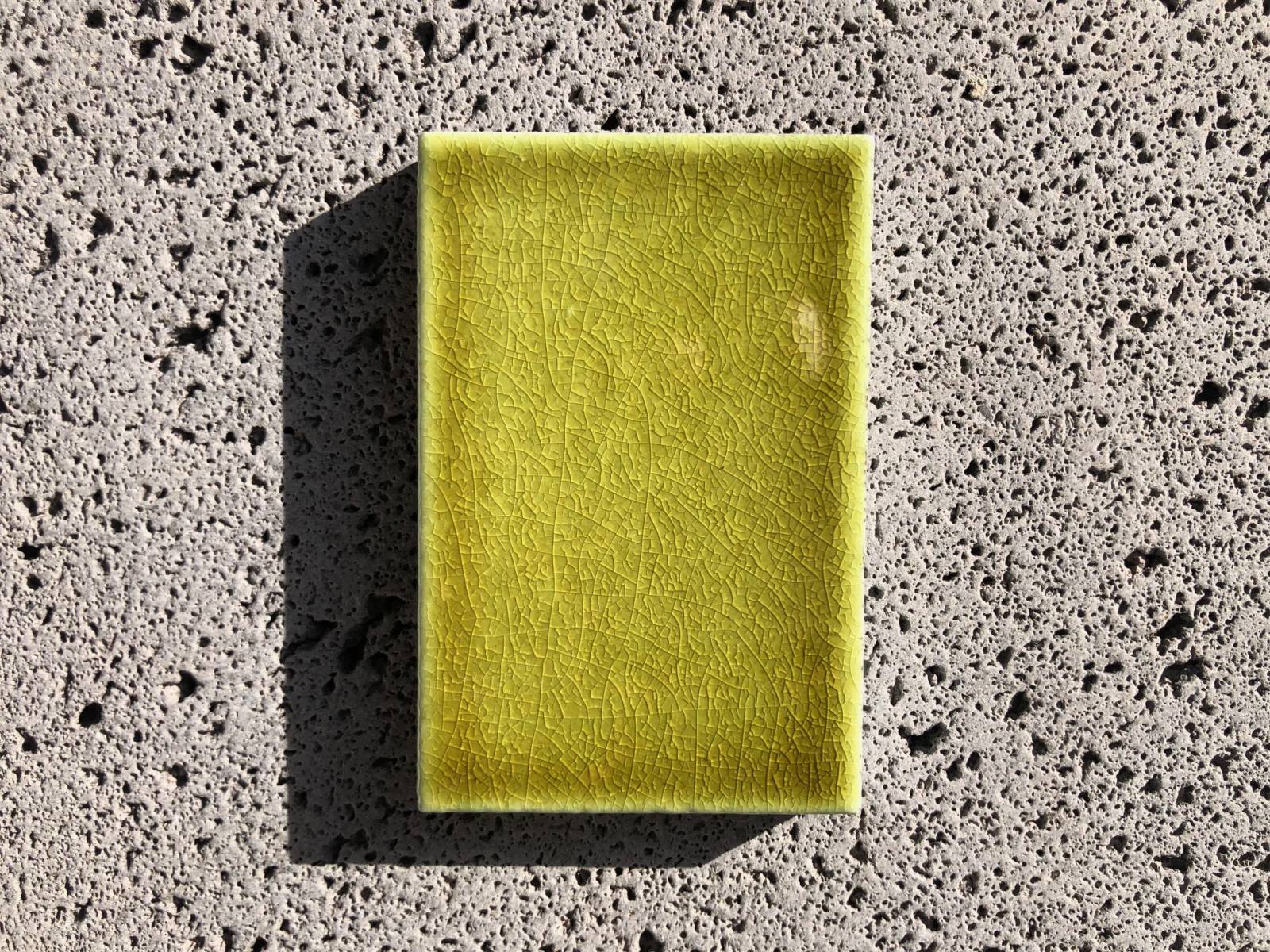 Suite à la cuisson du four à très haute température, ces réalisations uniques peuvent présenter de légères déformations entraînant la non planéité de la plaque, quelques petites taches, trous, bulles et un tréssaillage* plus ou moins marqués.