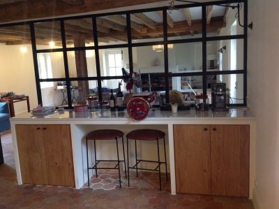 Grace à la décoration sur mesure de Sarah Lavoine qui a su intégrer parfaitement de la pierre de lave émaillée dans la cuisine et le comptoir accoudé au salon ainsi que le fond de cheminée réalisé également en pierre de lave brute. Sarah Lavoine a su allier les propriétés exceptionnelles de la pierre de lave à une décoration parfaite et discrète. La Maison Sarah Lavoine a su créer une décoration surprenante en intégrant de la pierre d lave émaillée couleur blanc coquille pour le plan de travail et ainsi que le fond d'une cheminée car la lave émaillée est idéal pour l'utilisation d'un foyer ouvert d'une grande cheminée.