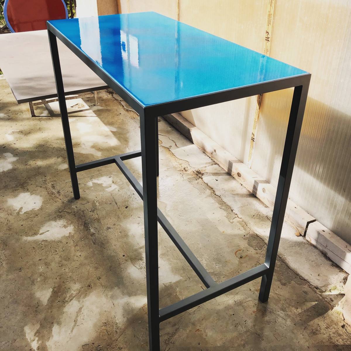 Le pied de table est thermolaqué couleur gris anthracite avec un RAL 7016.