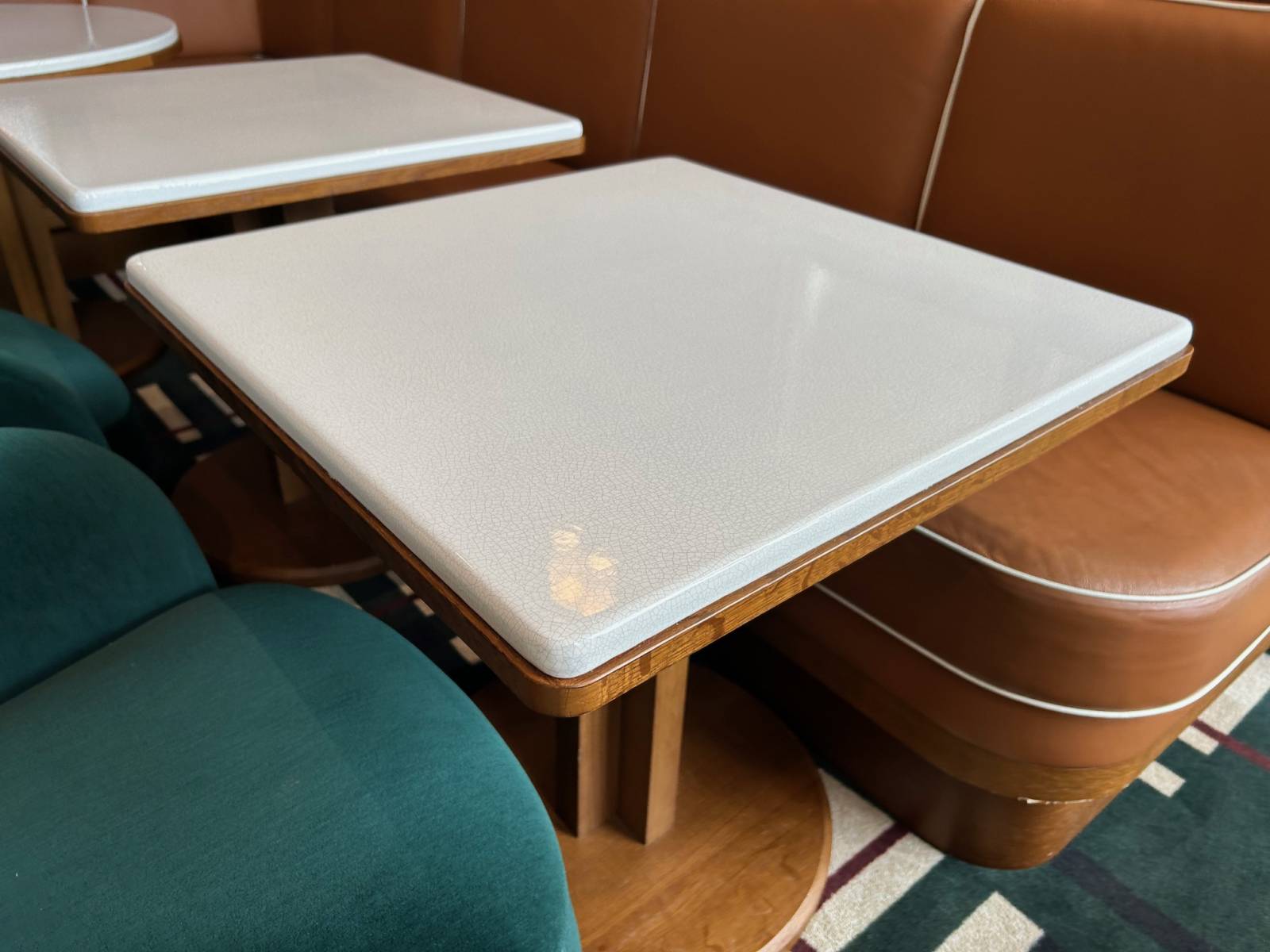 L'atelier LAVASTONE basé à Toulon a réalisé un ensemble de tables en lave émaillée sur piétement métal sur mesure pour Le Racing club Lagardère à Paris.