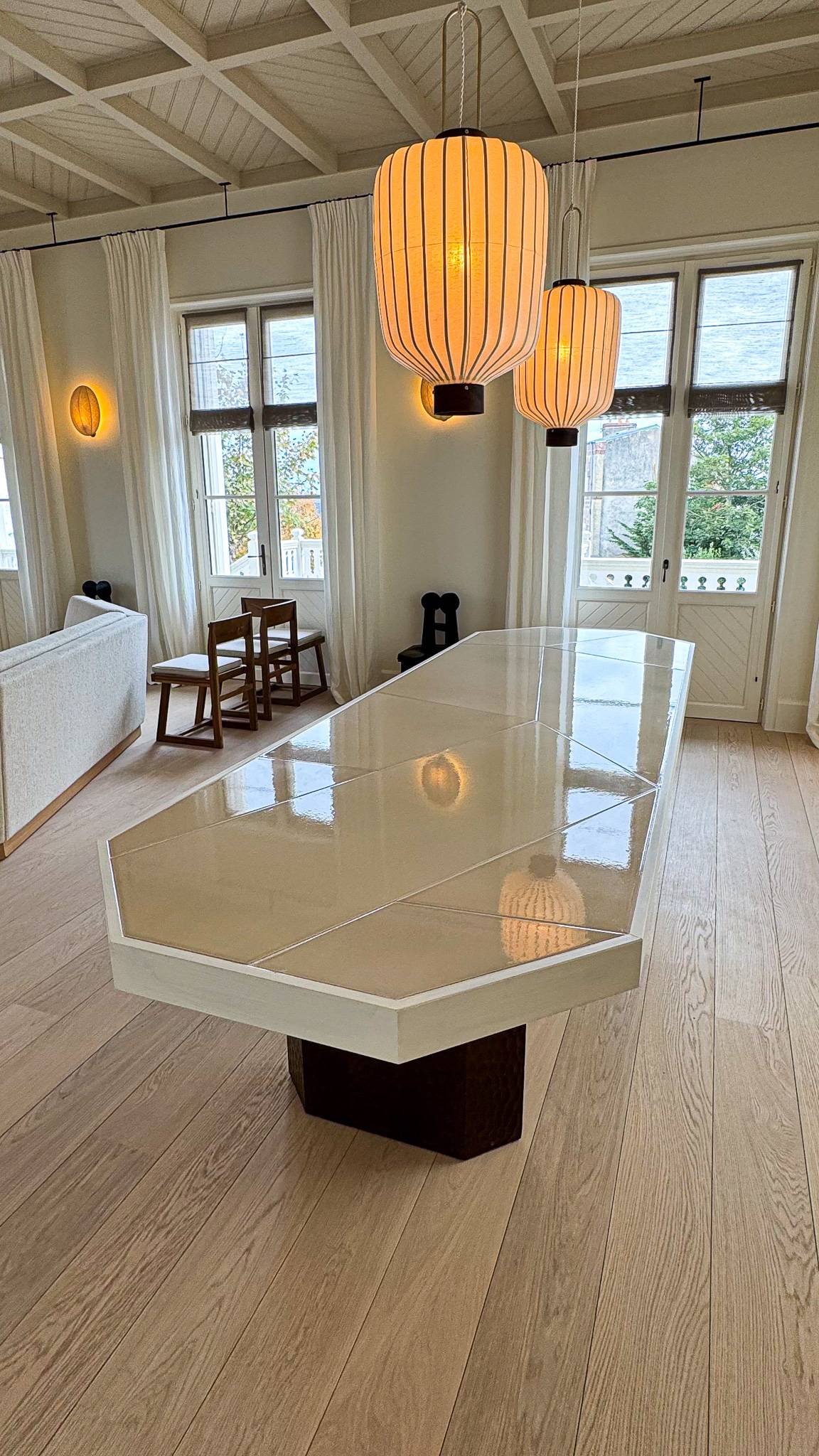 Chez Lavastone, nous collaborons avec des artisans et architectes talentueux pour créer des pièces uniques qui subliment vos espaces. En partenariat avec Baptiste Legué d'ABL , nous avons réalisé une table remarquable, installée à Caen, qui allie design moderne et savoir-faire artisanal.