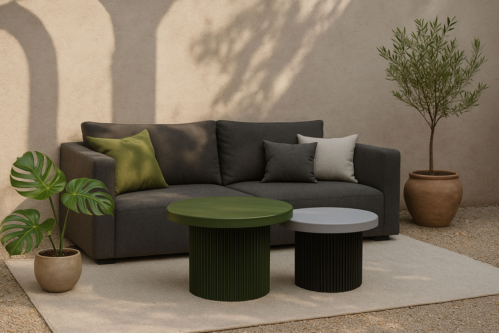 Leur différence de taille permet de les imbriquer, de les superposer légèrement ou de les disposer séparément selon votre espace. Leur forme ronde et fluide adoucit les lignes d’un intérieur moderne tout en apportant une présence sculpturale.