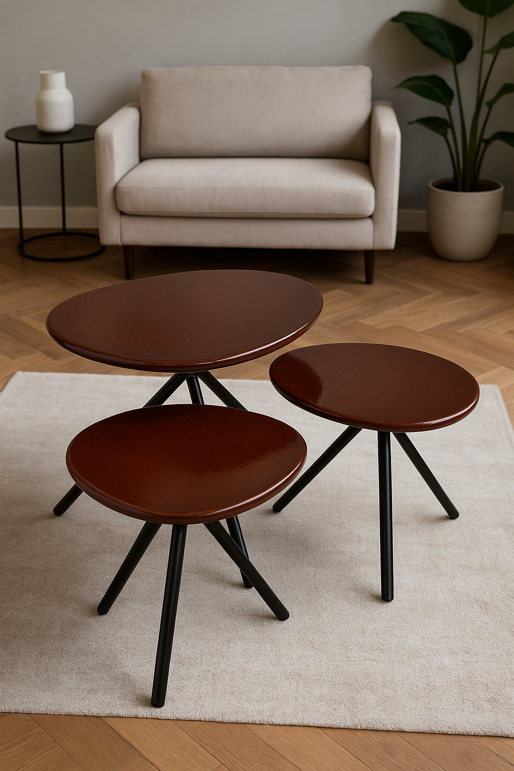 Ce duo de tables basses en pierre de lave émaillée illustre l’alliance parfaite entre savoir-faire artisanal et design contemporain.