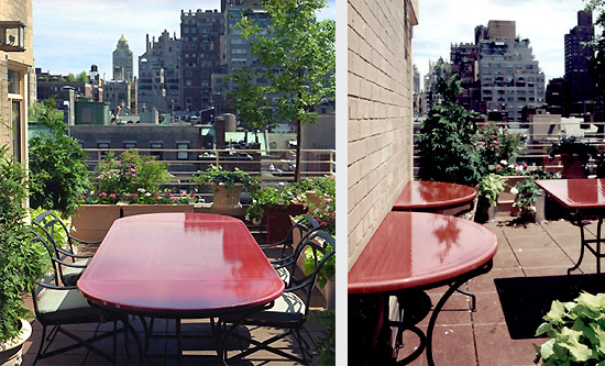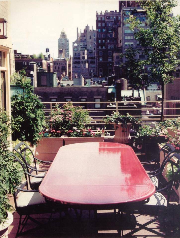 L'Atelier LAVASTONE a réalisé une grande table rectangulaire qui, avec ses 2 consoles en bout de table, forme un plateau plein-cintre couleur GARANCE pour Steven Spielberg en plein Manhattan.