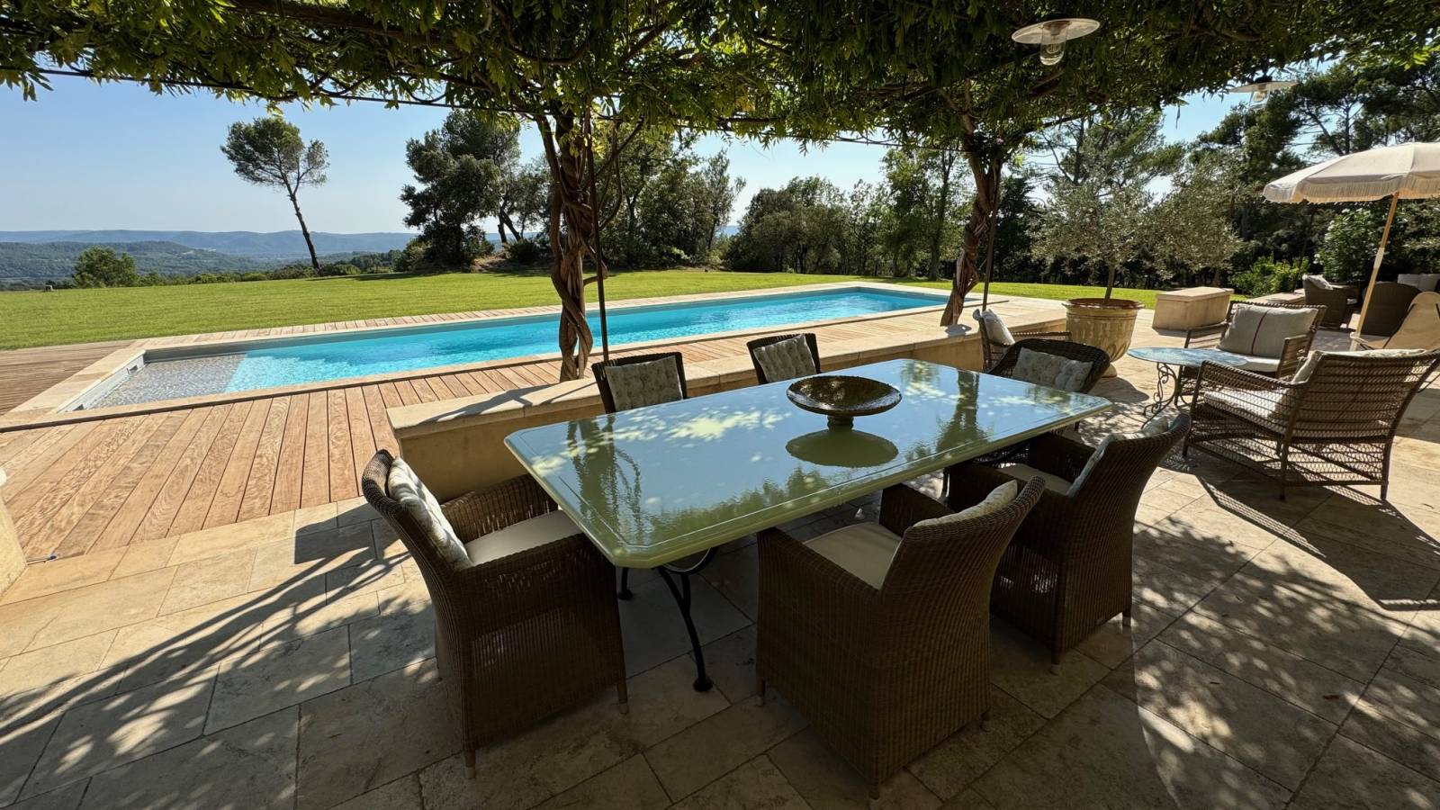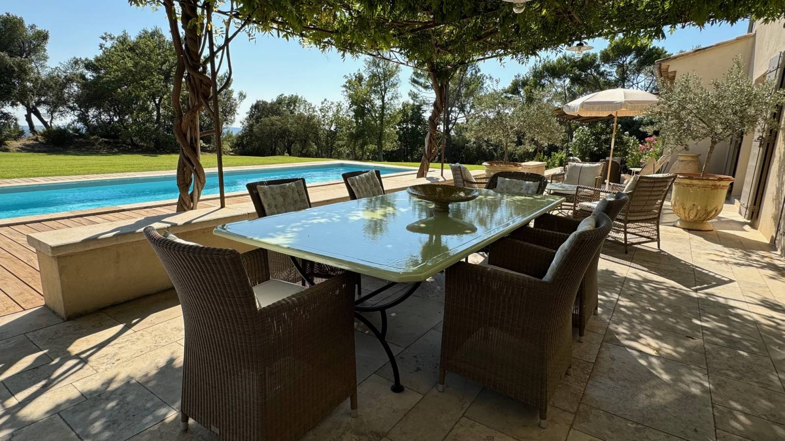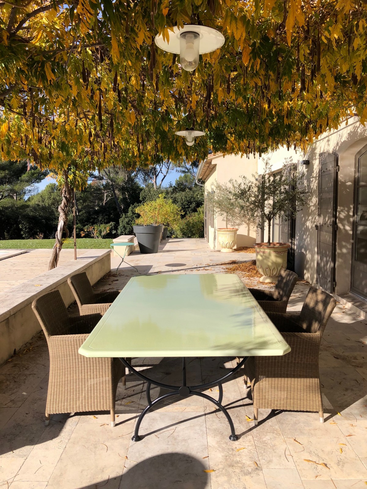 La couleur spéciale a été créée sur mesure par Bruno Garcia qui a su conseiller et adapter cette couleur Céladon à ce paysage de Provence proche du village de Lourmarin.