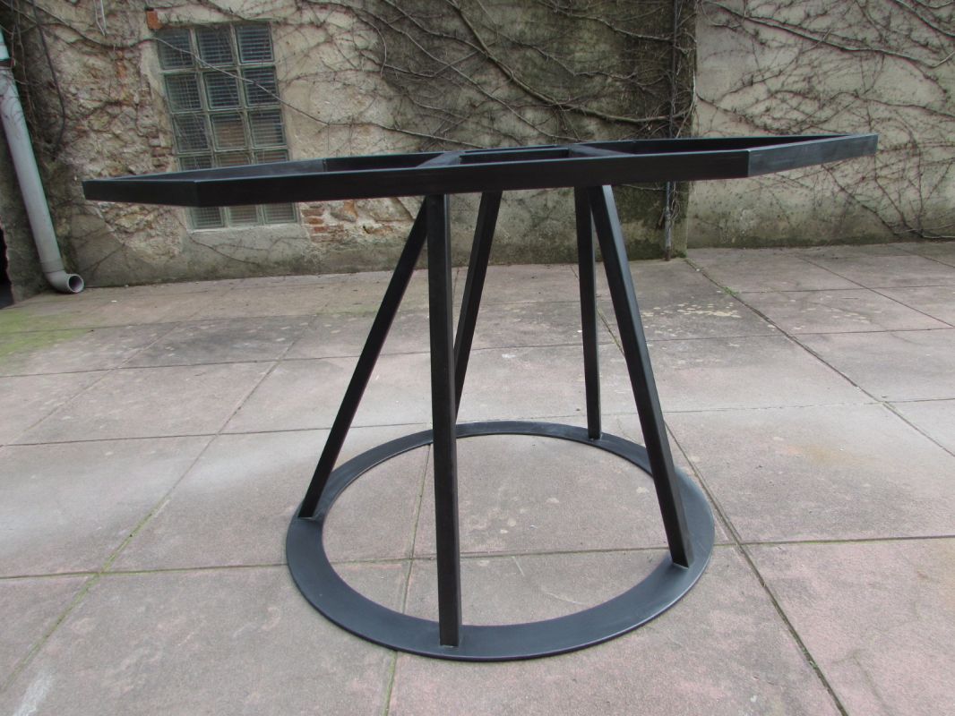 Notre client a élaboré en relation avec nous un design contemporain de piètement de table afin de recevoir un plateau Orange Tango en lave émaillée.
