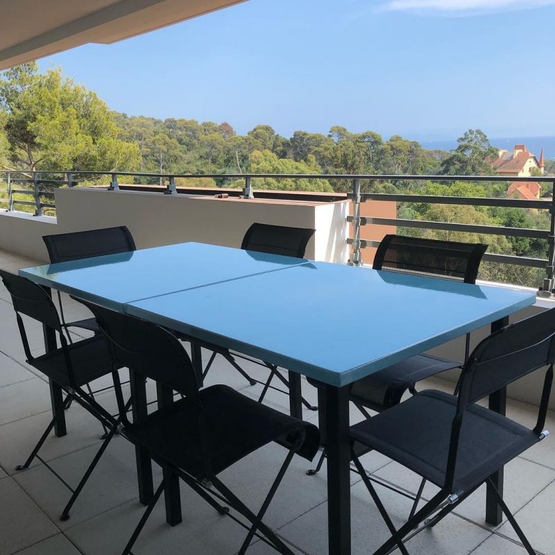 Réalisation par l'atelier Lavastone Design à Toulon, artisanat d'art haut de gamme et 100% français, des tables en lave émaillées qui sont résistante à toute épreuve.